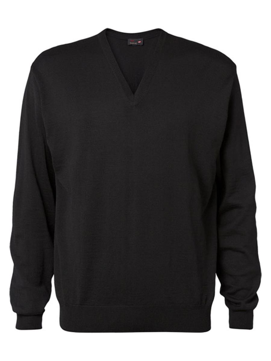Pullover med v-udskæring og ribkant ved halsudskæring, kant og ærmer.