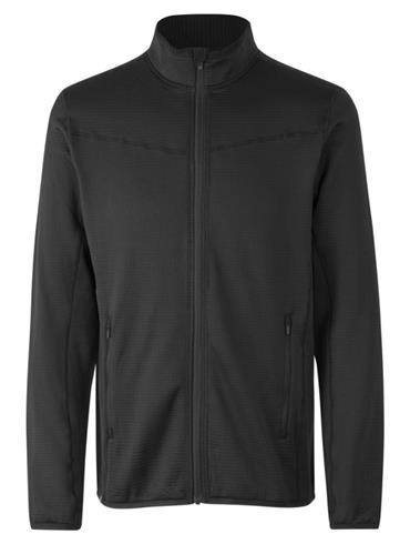 Sporty, fleece cardigan i behagelig stretch materiale. Blød indvendig vaffel fleece struktur og YKK lynlåse i front og sidelommer, samt hul til tommelfinger i ærmerne. Cardiganen kan også bruges som et isolerende lag under jakken. Tætsiddende pasform.