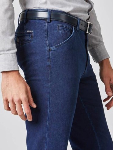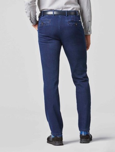 Disse denim chinos, i modellen Chicago, er en kombination af bomuldsbukser og uldbukser - nem at bedligeholde, holdbar og varmeregulerende. Buksen er med superstretch som sikrer maksimal bevægelsesfrihed, og de holder faconen optimalt. Buksen er desuden med de gennemtænkte MEYER-deltajer såsom det kulørte inderfor.