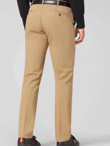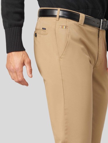 Disse chinos, i modellen Roma, har lige ben og en slank silhuet. Den bløde bomuld og linningen i stretch gør, at bukserne er yderst behagelige at have på. Der medfølger ikke et bælte, men vi sælger Meyer læderbælter, som vil passe perfekt til disse bukser.